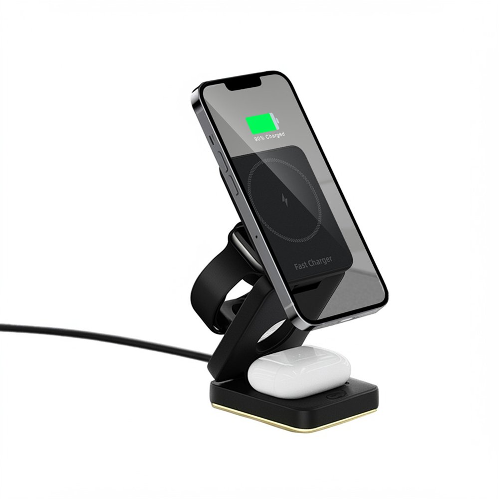 LEPOID ‌3-in-1 ABS Foldable Magnetic Wireless Charger, Portable Charging Station Compatible with iPhone 12-16 Series, AirPods, Apple Watch & Samsung Galaxy S20-S25 Plus Ultra