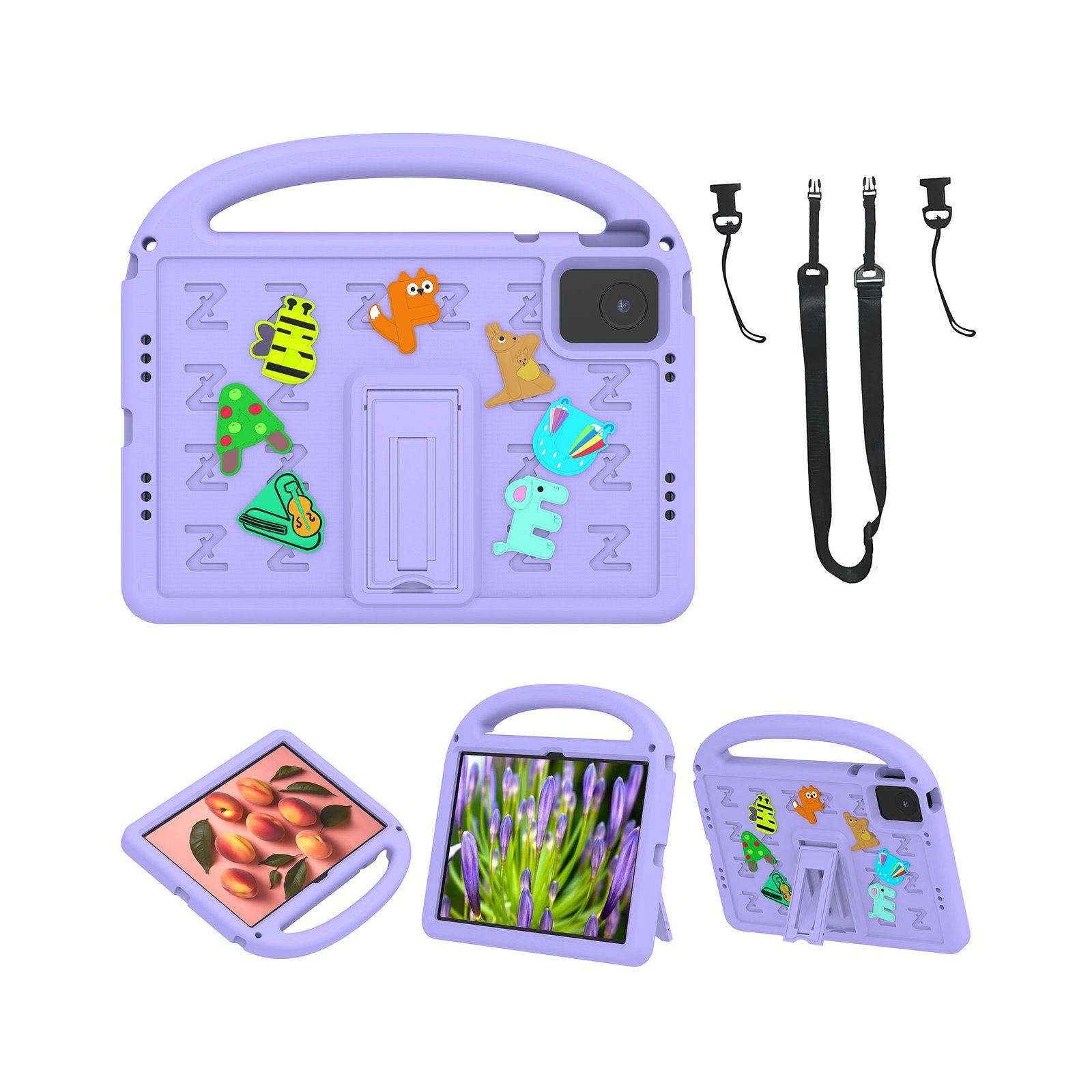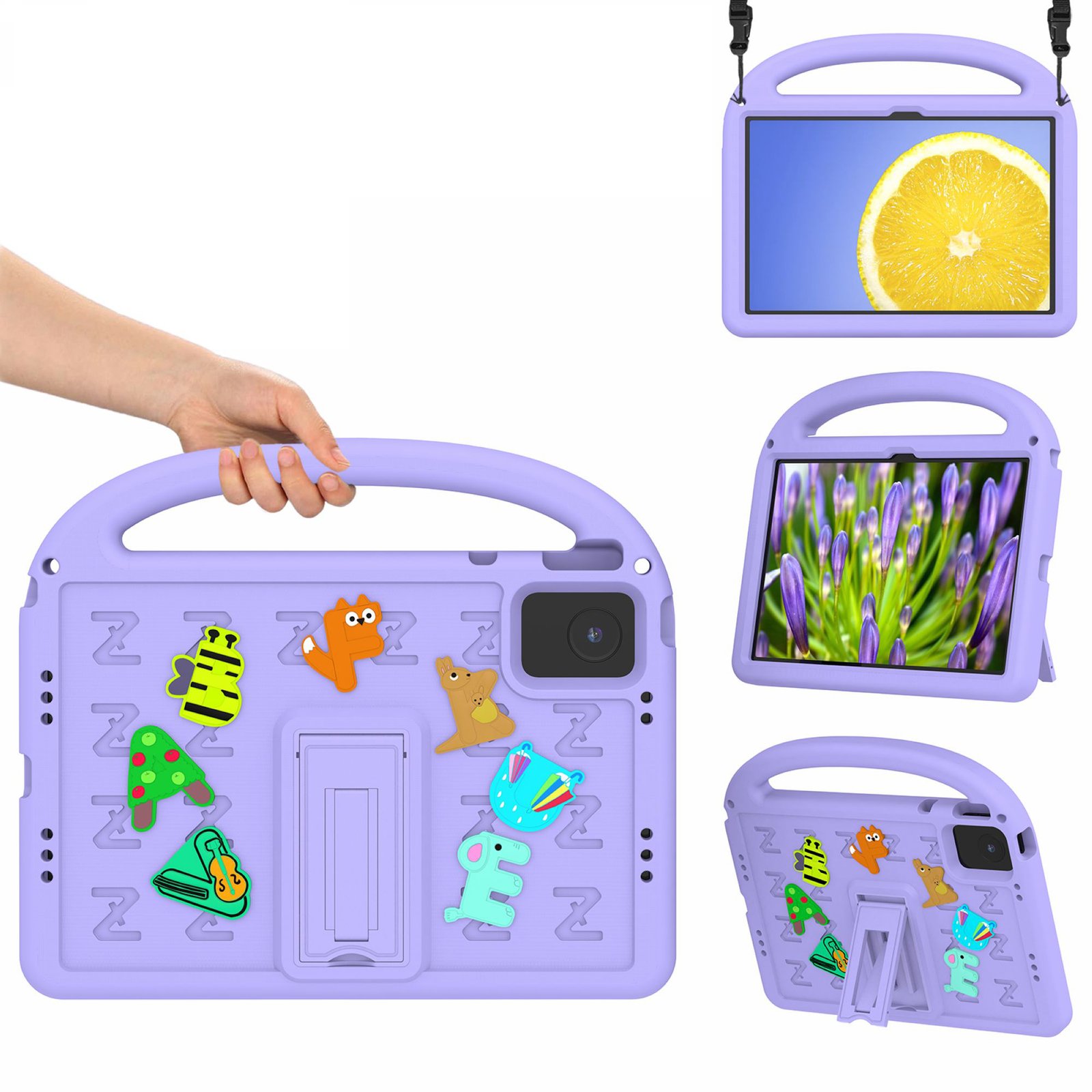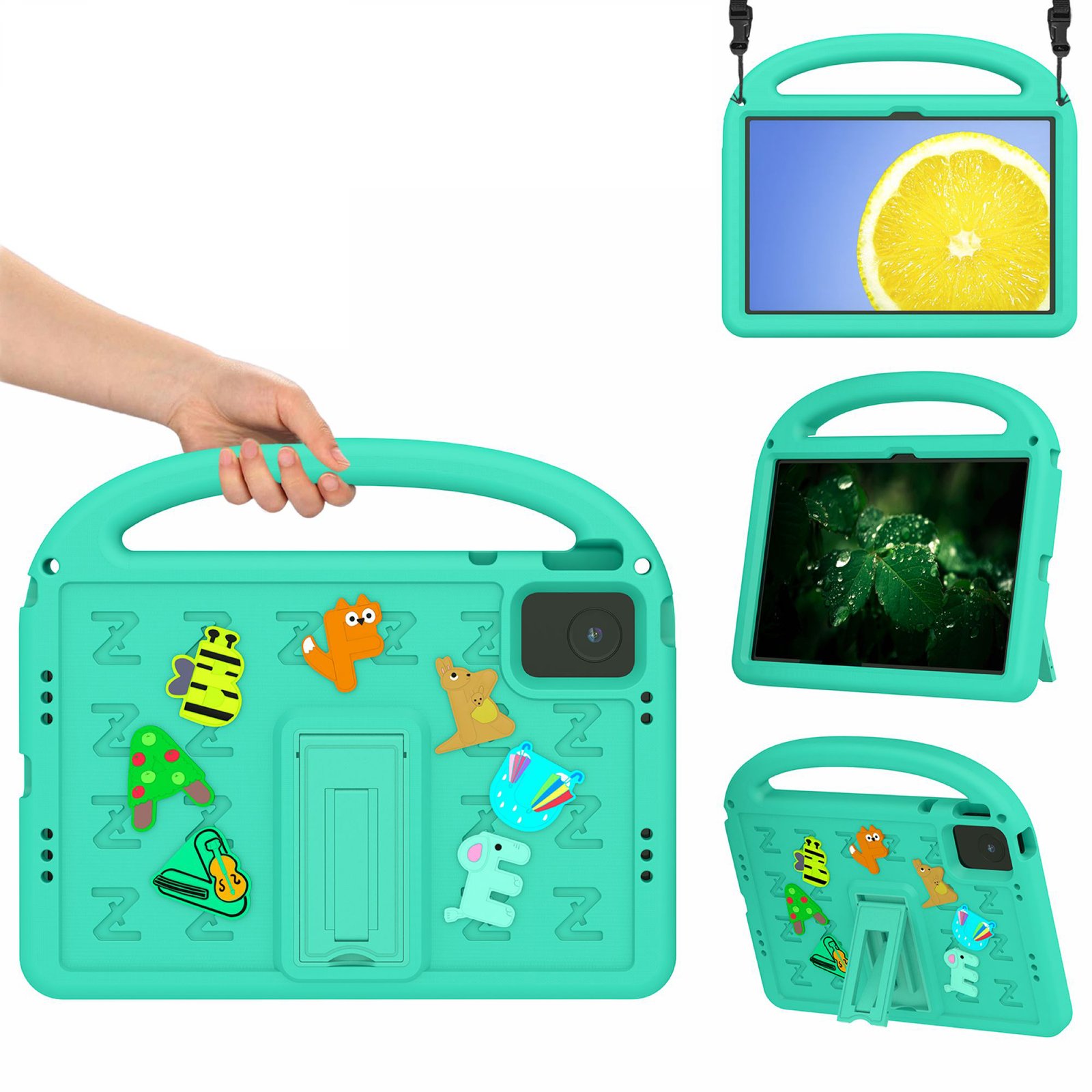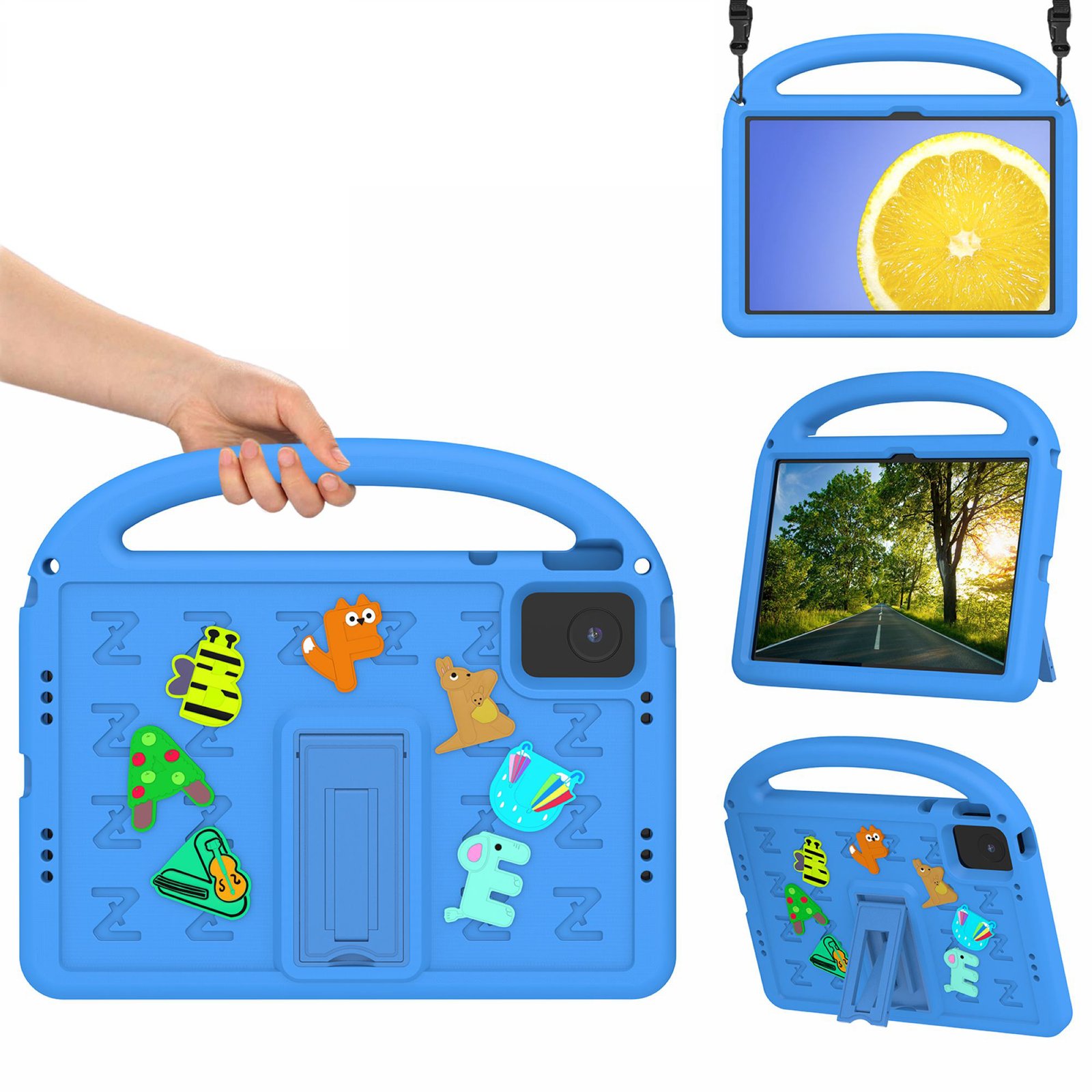 LEPOID 儿童防震 EVA 支架保护壳,卡通手柄平板电脑保护套,带可调节肩带,适用于联想昭阳 K10